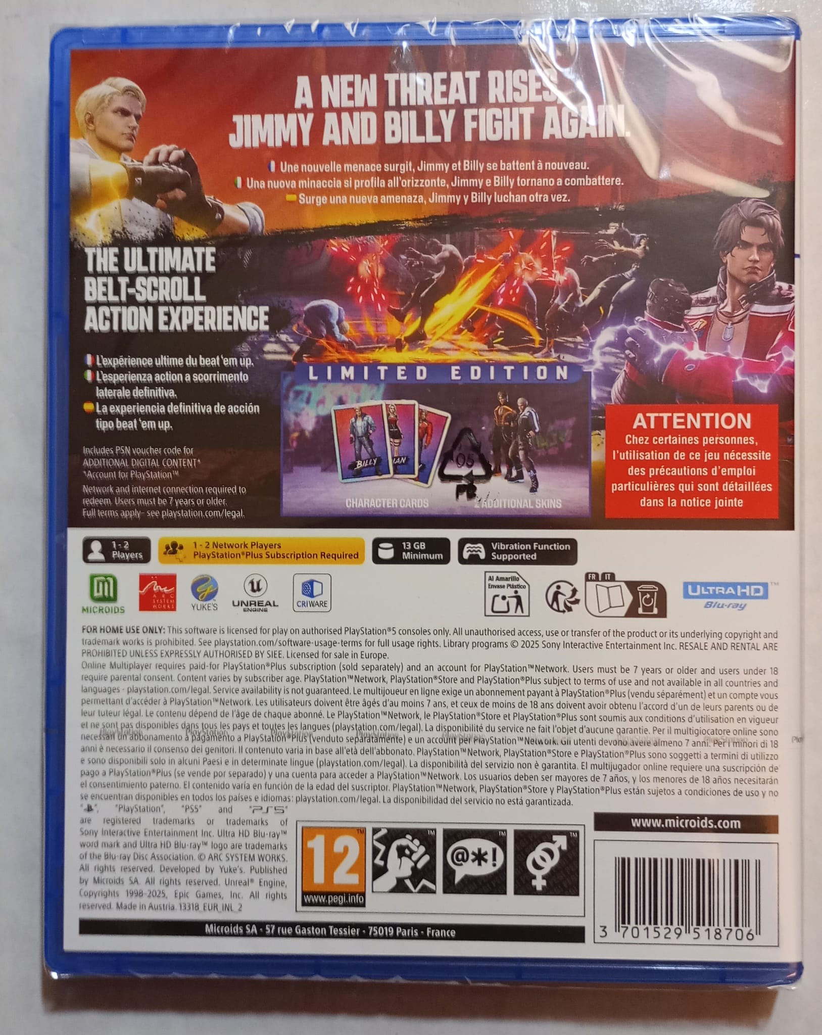 Los jugadores asumen el rol de los hermanos Lee en una peligrosa misión para rescatar a Marian, quien ha sido secuestrada por la temida banda de los Shadow Warriors. Las batallas se desarrollan en el clásico estilo «beat ‘em up», combinando golpes, patadas y movimientos únicos. Esta edición limitada incluye personajes jugables adicionales, niveles exclusivos y jefes renovados que ofrecen un verdadero desafío para los jugadores.