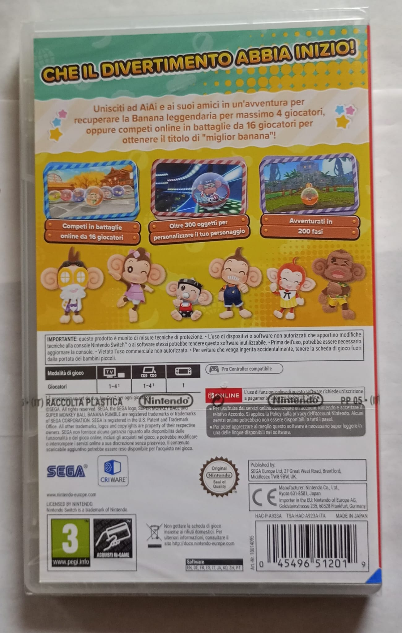 ¡Únete a AiAi y compañía en Super Monkey Ball Banana Rumble, donde puedes competir hasta con 16 jugadores en línea en varios modos de juego para llegar a lo más alto de la clasificación! También puedes colaborar con tus colegas en el modo cooperativo para 4 jugadores o dejarte llevar por una apasionante y entretenida historia en la nueva experiencia del modo Aventura.