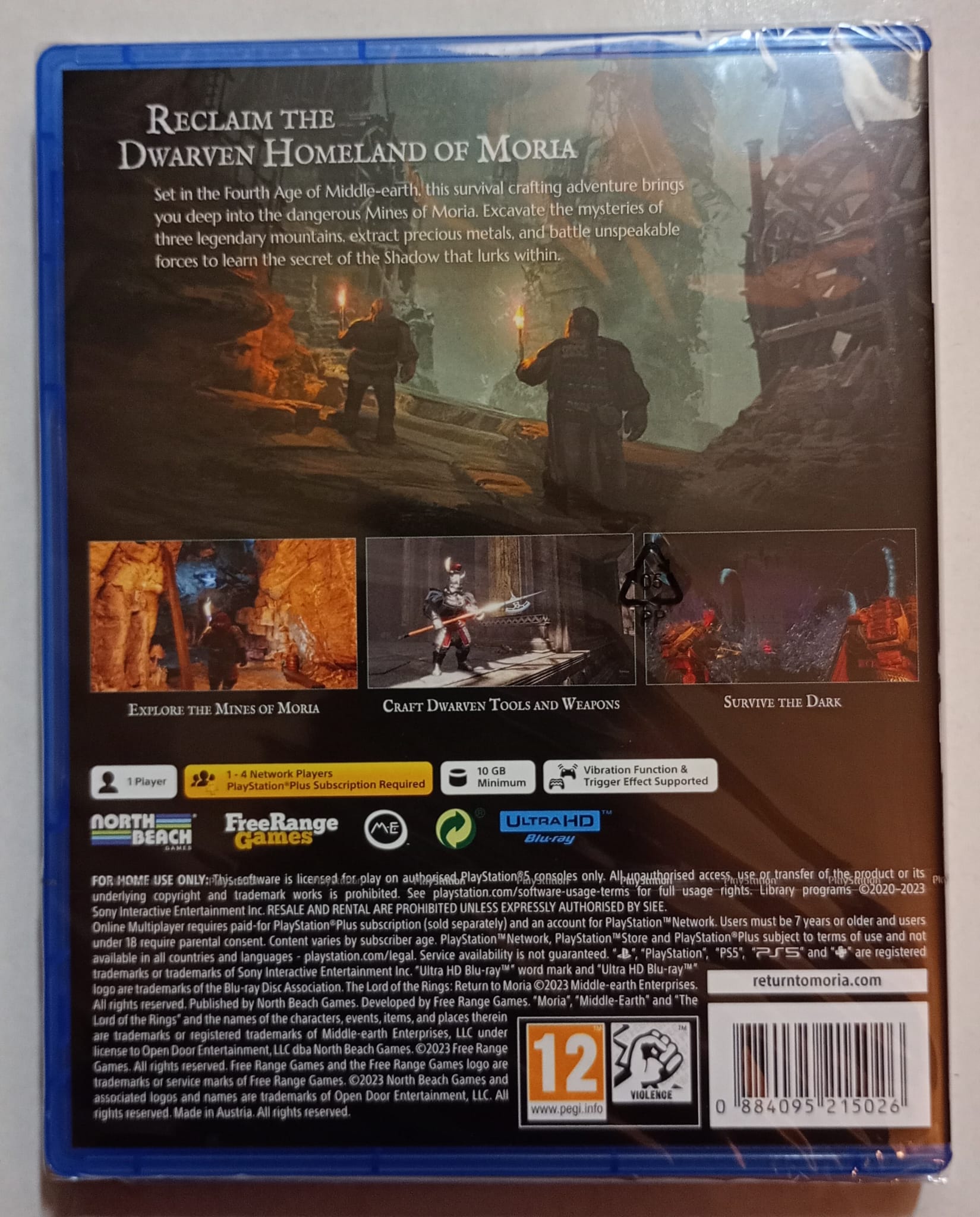 Bienvenido a Lords of the Rings: Return to Moria, el único videojuego de supervivencia ambientado en la Cuarta Edad de la Tierra Media, el emblemático mundo de fantasía creado por J.R.R. Tolkien. Convocados a las Montañas Brumosas por Lord Gimli Portacerraduras, los jugadores tomarán el control de una compañía de Enanos con la misión de recuperar el botín perdido de la patria enana de Moria, conocida como Khazad-dûm o Dwarrowdelf, el cual están las profundidades bajo sus pies. Su búsqueda requerirá fortaleza, adentrándose en las profundidades de las Minas de Moria para recuperar sus tesoros.